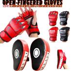 大人用 オープンフィンガー グローブ 湾曲型 ミット セット 総合格闘技 トレーニング パンチンググローブ ハーフフィンガー