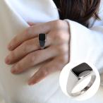 印台リング ブラック オニキスリング スクエア 細身 スタンプリング シグネットリング ステンレス シルバー 指輪 金属アレルギー対応