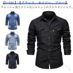 デニムシャツ アメカジ ウォッシュ加工 スリム 細身 メンズ ウエスタンシャツ 長袖 デニムカジュアルシャツ 春秋 薄手 大きいサイズ 秋服 ブ