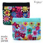 【RUNE 内藤ルネ × アーンジョー】 フラットポーチ モノトーンフラワー 限定商品 日本製 シェニール織