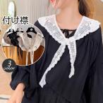 付け襟 つけ襟 レディース 総レース 透かしレース リボン ボタン フェイクパール 白襟 黒襟 重ね着風 レイヤード風 ビッグカラー ブラウス襟 おし