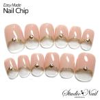 ネイルチップ ショート ベージュ 逆フレンチ ゴールドスタッズ付き ネイルチップ 12枚入り ジェル [KS]