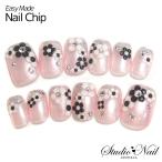 ネイルチップ ショート パール系 ピンク ラメベース モノトーン フラワー スワロ付き ネイルチップ 12枚入り ジェル [KS]