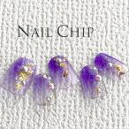 ネイルチップ ショート ジェル クリアパープル エアーグラデーション ライン パール 箔 ジェル