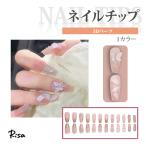 ネイルチップ 付け爪 チップ ロング 24枚セット グルー付 3Dアート キラキラ ストーン ビジュー ラメ ピンクベージュ 時短 貼る セルフ つけ爪 初心者