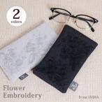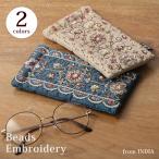 刺繍 ポーチ インド製・花刺繍眼鏡ポーチ アジアン スマホポーチ 眼鏡 花柄(メール便対応/ラッピング対応)
