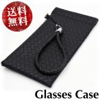 ボーナスストア対象 イントレチャート メガネケース ソフトレザー メッシュ編み 小物入れ ポーチ デザイン ブラック 黒 眼鏡入れ 薄型 スリム ケース