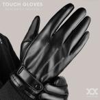 手袋 メンズ 全指スマホ対応 グローブ PU レザー 防寒 防風 自転車 バイク バイクグローブ スマートフォン対応 裏起毛 フェイクレザー リブ ATG2