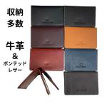 定期入れ 革 パスケース ボンデッドレザー 収納多数 中ベラ付き 牛革 メンズ ギフト