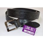 クロコ型押し 3連通し本牛革 メンズロングベルト BK サイズ調整可能 〜ウエスト110cmまで対応