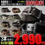 福袋/2990円わけありデザイン本革レザーベルト3本セットで訳あり/メンズ セール 爆買