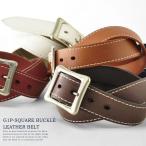 ベルト メンズ レザー スクエアバックル ステッチ 本革 セール 爆買