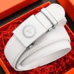 ベルト メンズ オートロック スライド式 バックル 穴なし サイズ調整可能 ホワイト 白 レザー ビジネス ゴルフ カジュアル 流線型