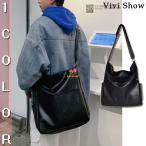 大きめショルダーバッグ メンズ 斜めがけ カジュアル 通学 おしゃれ バッグ 肩掛け PUレザー ブラック