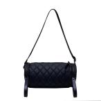ショルダーバッグ 肩掛け 斜めがけ キルティング ボストン 円柱 ストリート ファスナー PUレザー 韓国 (ブラック) 母の日