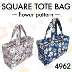 4962 スクエア トート トラベル 旅行 サブ 手提げ エコバッグ 買い物 A4 ジム 花柄 フラワー 角型