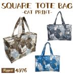 スクエアバッグ トートトラベル旅行サブ手提げエコバッグ買い物A4ジム デニム柄猫キャットにゃんこ 角型 遠足 運動会 ピクニックマザーズバッグ4976