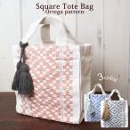 ハンドバッグ 買い物バッグ タッセル付きスクエアトート・オルテガ柄 綿100%