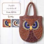 フェルト バッグ ネパール製・フェルトのトートバッグ(フクロウ)ネパール フェルトバッグ