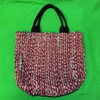 裂き織り トートバッグ レッド ハンドメイド ランチバッグ 裏地付