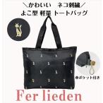 猫好きな人へ \軽さ190g/猫刺繍 よこ型トートバッグ 4917 [Ferlieden フェアリーデン] 刺しゅう ネコ 軽量