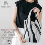 ニットバッグ ウェーブ模様 サブバッグ モノトーン 軽量 オールシーズン ネコボタン付 レディース (郵2) ポイント消化
