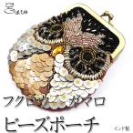 ふくろう ビーズ ガマ口 ポーチ ビジュー スパンコール フクロウ