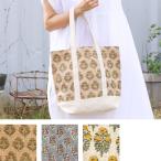 ジュート ブロックプリント トートバッグ インド綿 ハンドプリント