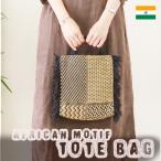 トートバッグ コットン ミニトート アフリカンモチーフ フリンジ モノトーン インド 綿