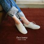 ファッチャーモ公式 日本製 lacci ラッチ ソフトレザー レースアップシューズ レディース シューズ ひも靴 本革 黒 ブラック ホワイト フラットシューズ