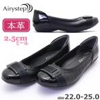 Airystep エアリーステップ 本革 パンプス バレエシューズ レディース バックル カッター 幅広 歩きやすい No.6352