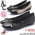 日本製 パンプス AC neue ar he 幅広 3E リボン キルティング ローヒール 入学 入園 参観日 シェル No.1248