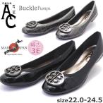 日本製 パンプス AC neue ar he 幅広 3E エナメル 型押し バックル ローヒール ラウンド 入学 入園 参観日 シェル No.1487