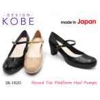 【SALE】日本製 DESIGN KOBE デザイン神戸 ラウンドトゥ 厚底 美脚 太ヒール パンプス ベルト ストラップ シンプル レディースDS1620