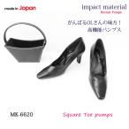 【定番】日本製 リクルート パンプス オフィス スクエア 高機能 クッション性 柔らかい impact material ソフト 6cmヒール OL 快適 MK1000