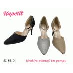 【SALE】Unpetit キラキラ ポンテッド トゥ ビジュー ピン ヒール カウンター 9cm ストラップ BL ブラック SV シルバー GD ゴールド 細身 sc8510