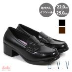 ローファー 学生 ベーシック 3cmヒール 取り外せる カップインソール シンプル デザイン a.v.v 22cm〜25cm 黒 ブラック th300 アキリコ