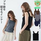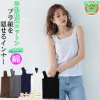 ブラ紐隠しインナー 綿 コットン100% タンクトップ シンプル 無地 スクエアネック ブラ紐隠せる キャミソール 白 黒 ネイビー グレー