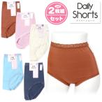 送料無料 2枚組セット 婦人 レディース 丈長 1分丈 ショーツ 伸縮素材 サイド縫い目なし 綿混 ベア天 丸編み 下着 yg-1487 メール便対応