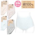 送料無料 2枚組セット 婦人 レディース ショーツ リブ 身生地綿100% 丈長 お腹すっぽり ゆったり楽々 花柄 下着 M L LL yg-2299 メール便対応