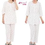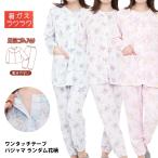 愛情介護 パジャマ レディース ワンタッチパジャマ ラグラン袖 通年素材 スムース ランダム柄 介護 入院 あす楽 一部地域除き送料無料 K89266