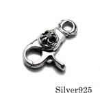 シルバー925製 29×19mm リリー デザイン 百合の紋章 ナスカン 金具 レバー型 キーホルダー ストラップ パーツ レバーナス 純銀