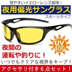 夜用 偏光 イエローレンズ スポーツサングラス UV400 紫外線カットサングラス 6点セット 男女兼用 イエロー