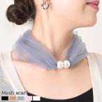 スカーフ ネックカバー 夏 UV レディース つけ襟 フェイクパール チュール シースルー 可愛い おしゃれ 日よけ 冷え対策 首 シワ隠し