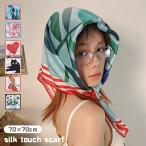 スカーフ バンダナ バブーシュカ 大判 シルクタッチ 夏 正方形 レディース メンズ ストール ネックカバー リング バッグ ベルト リボン
