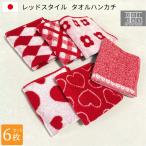 タオルハンカチ 6枚セット 今治製 綿100% 日本製 レッドスタイル 吸水 速乾 ふわふわ 柔らかい 25×25cm ハート タオル まとめ買い 還暦祝い
