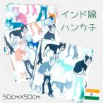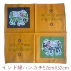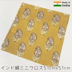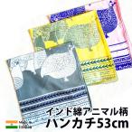 ハンカチ タオル ブロックプリント コットン インド綿 アニマル柄 22cm x 22cm