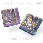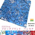 バンダナ ハンカチ コットン インド綿 ブロックプリント 草木柄 53cm x 53cm お弁当包み