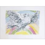 ポスター アート Flyng Dove with Rainbow Background