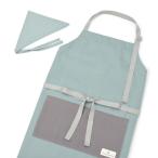 子どもエプロン 130〜160cm くすみ無地 グレイッシュブルー 三角巾 セット キッズエプロン かわいい おしゃれ 小学校